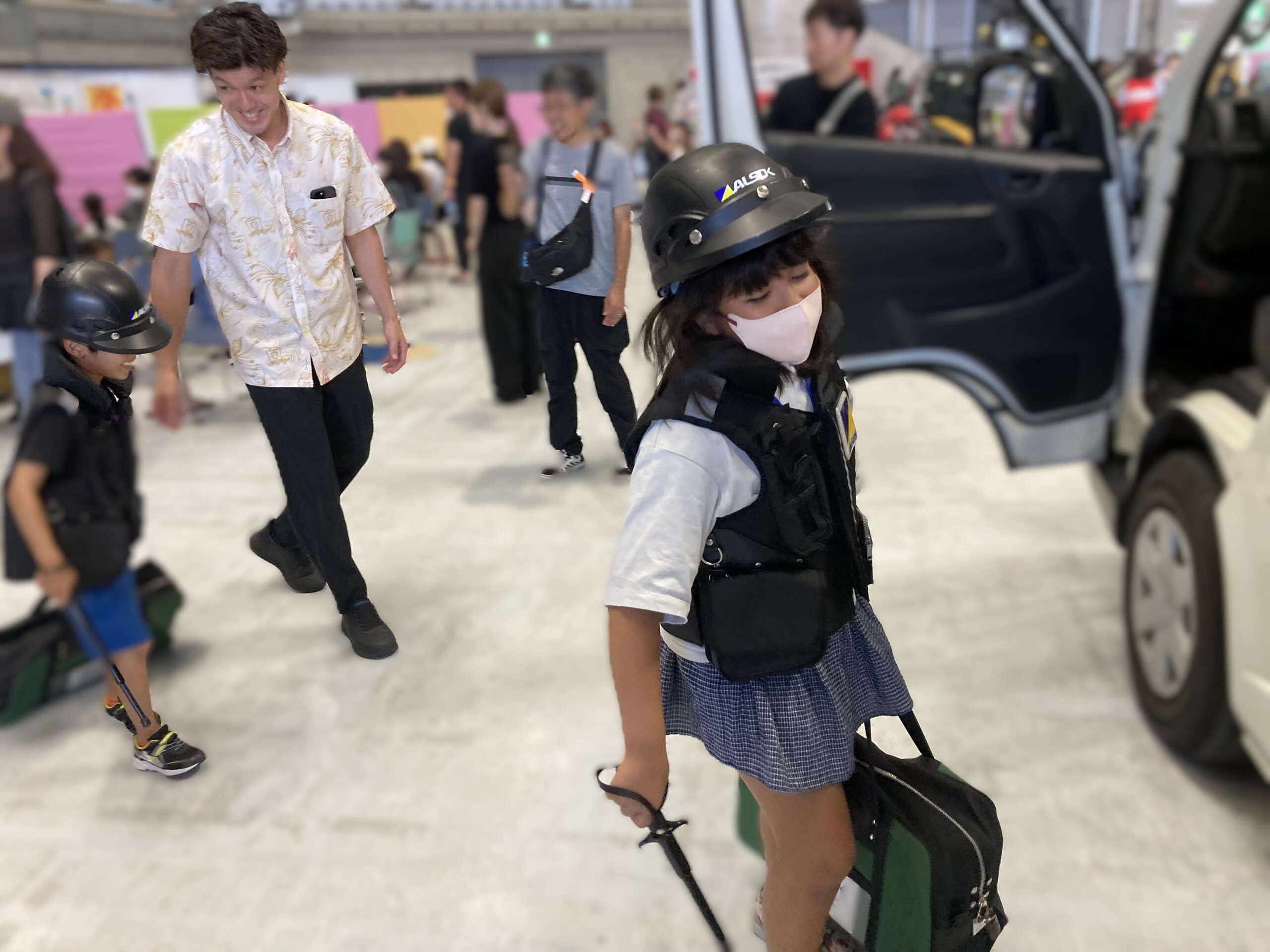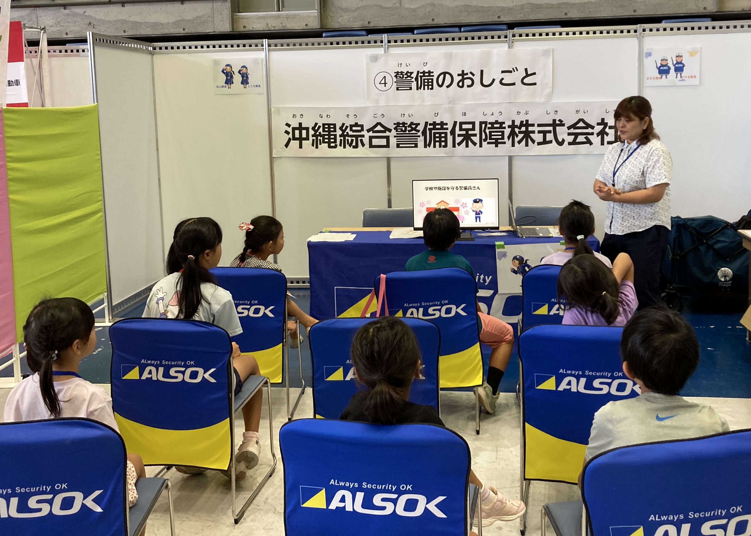2025/10/09 お知らせ 「沖縄観光こどもみらいお仕事体験イベント」参加について 9月27日(土)と28日(日)の2日間、沖縄コンベンションセンター展示棟で開催された「沖縄観光こどもみらいお仕事体験イベント(本島)」にブースを出展、「警備輸送(現金運搬)」のお仕事を体験してもらいました。